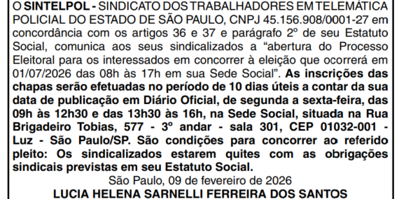 O SINTELPOL deseja a todos sindicalizados que fazem aniversário no mês de Março, toda a felicidade desse mundo, e que Deus abençoe a cada um com muita paz, amor, alegria, fé, saúde e prosperidade. Diretoria do Sintelpol Recadastramento Aproveitamos para comunicar aos aniversariantes do mês de Março, para que não esqueçam de efetuar o seu…