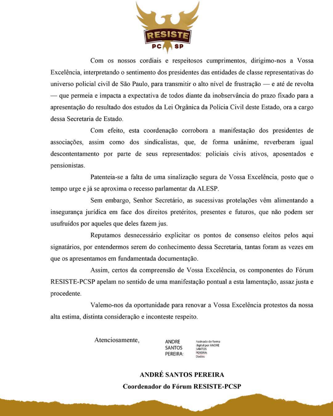 Movimento Resiste SP - Polícia Civil de SP